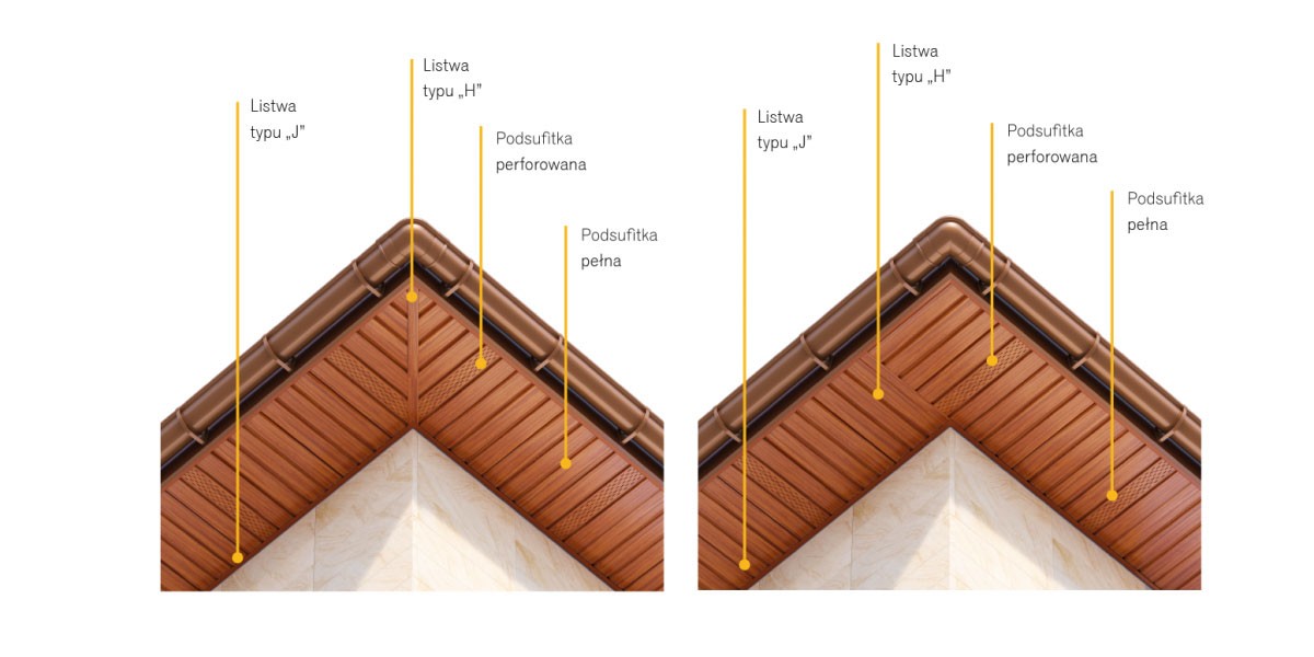 Bogata kolorystyka podbitki Galeco pozwala dobrać do każdego stylu budynku.